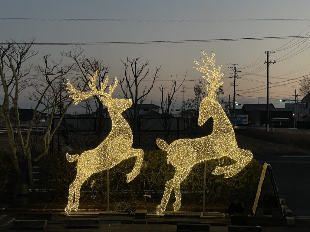 そして駐車場では、高さ2.7mの特大トナカイがお出迎え。