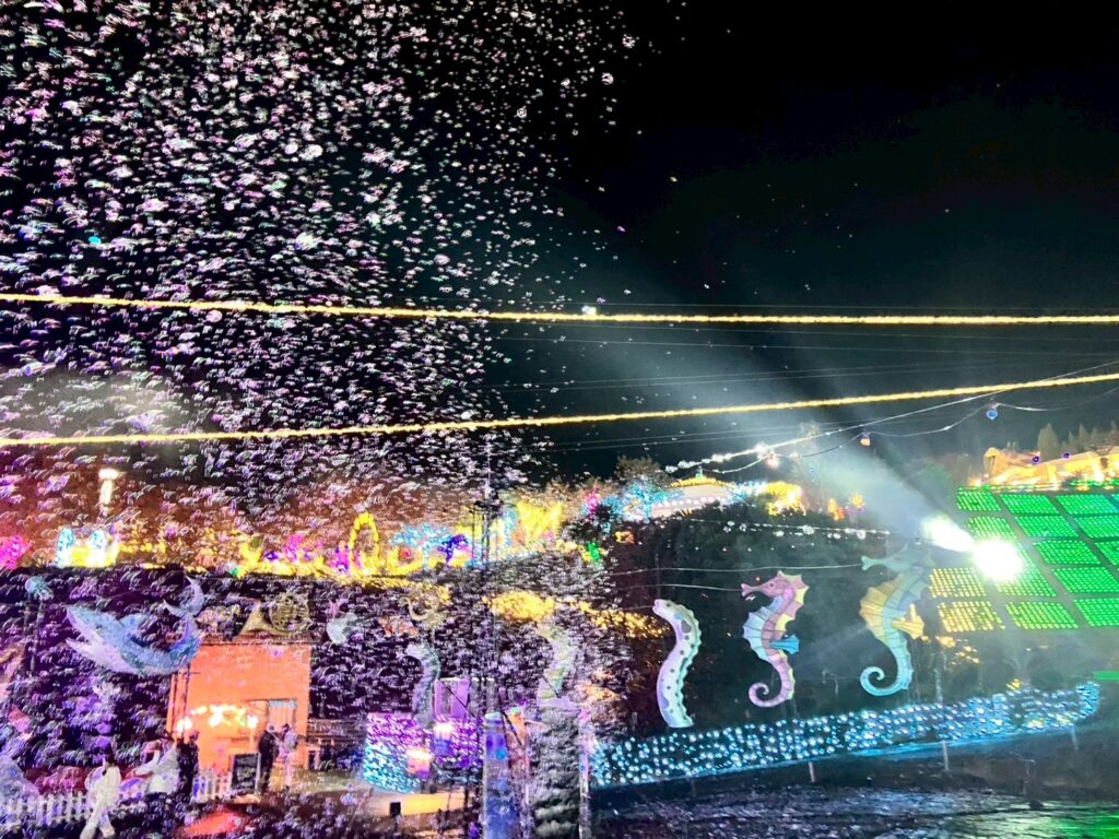シャボン玉1つ1つが動く光の粒になり、とても幻想的でした。