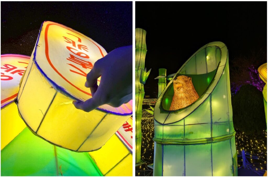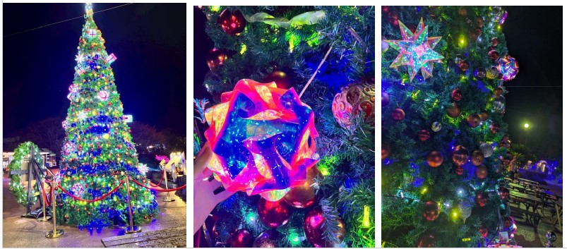 さらにイルミネーション自体も、ストリングス、ロープライト、ネオン、布素材、オーロラフィルムなど、多種多様な素材・手法が使い分けられていました。