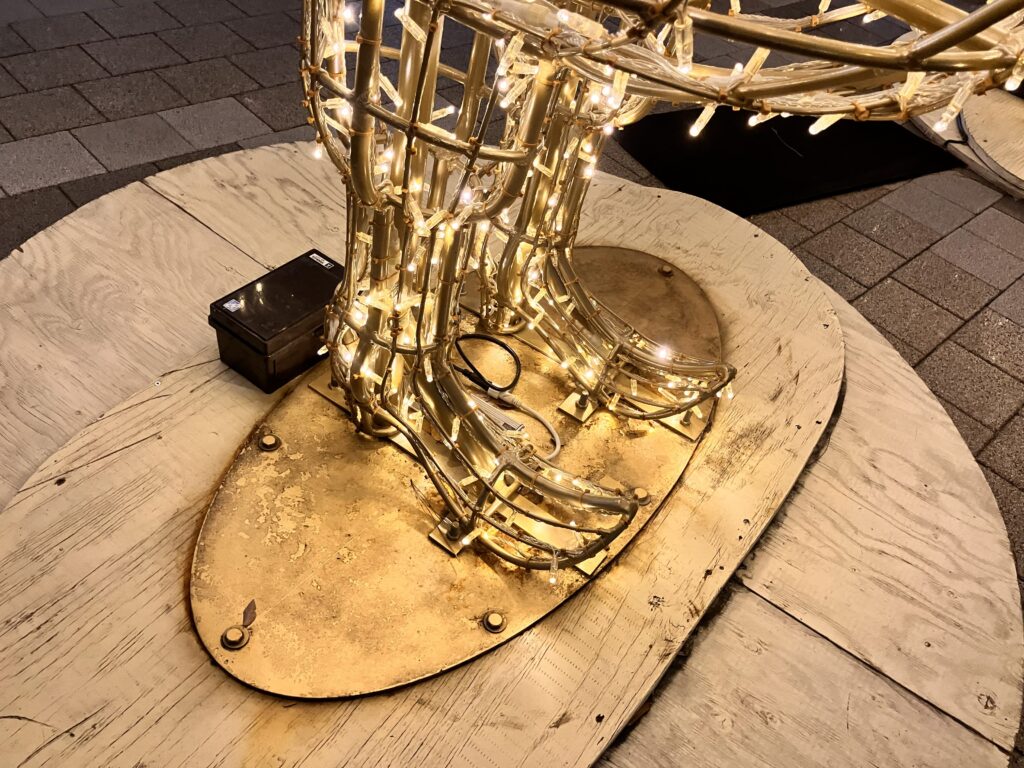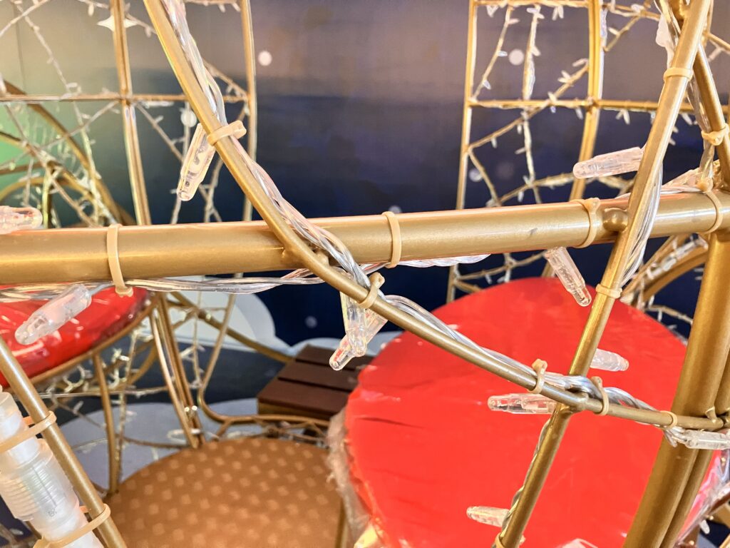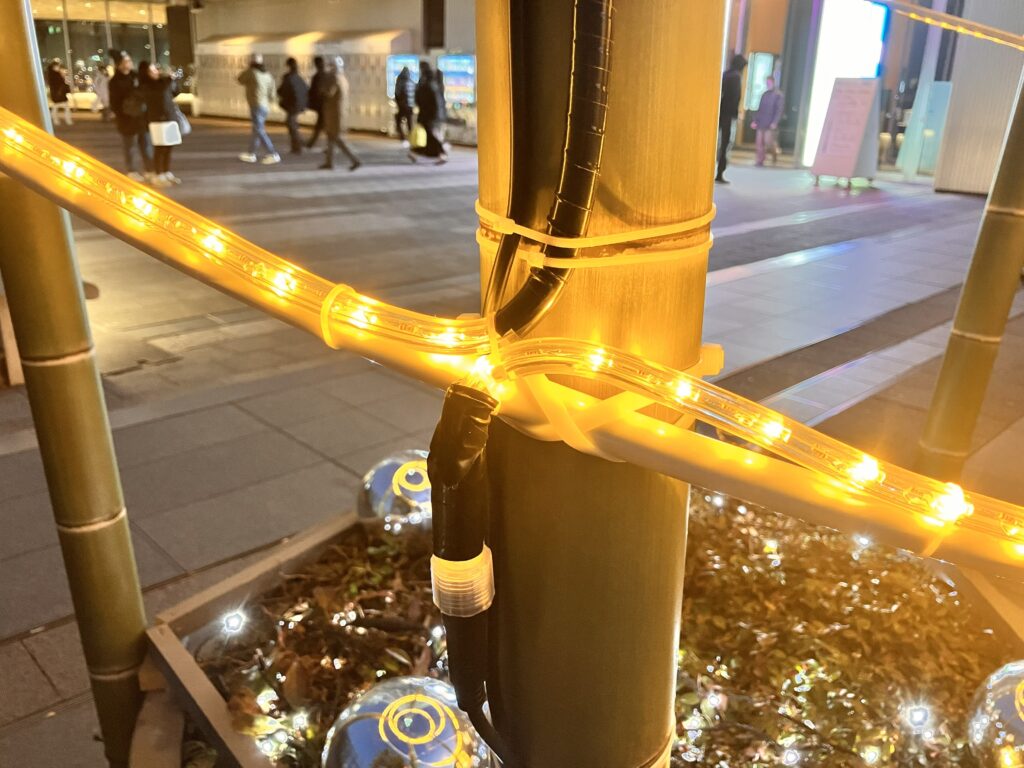 こちらは、イルミネーションを固定するインシュロック(結束バンド)までゴールドで統一されていました。