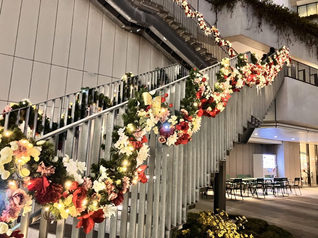ソラマチひろばのオブジェには、フラワーガーデンとイルミネーションが組み合わされていました。