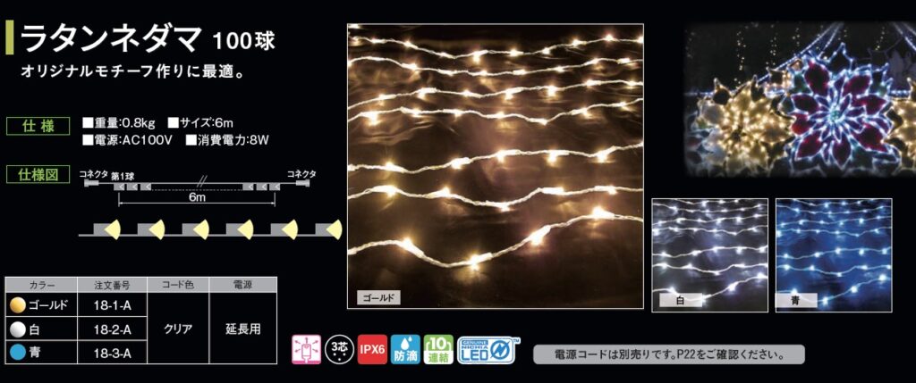弊社にも「ラタンネダマ100球」という商品がございますので、ご参考までに、、