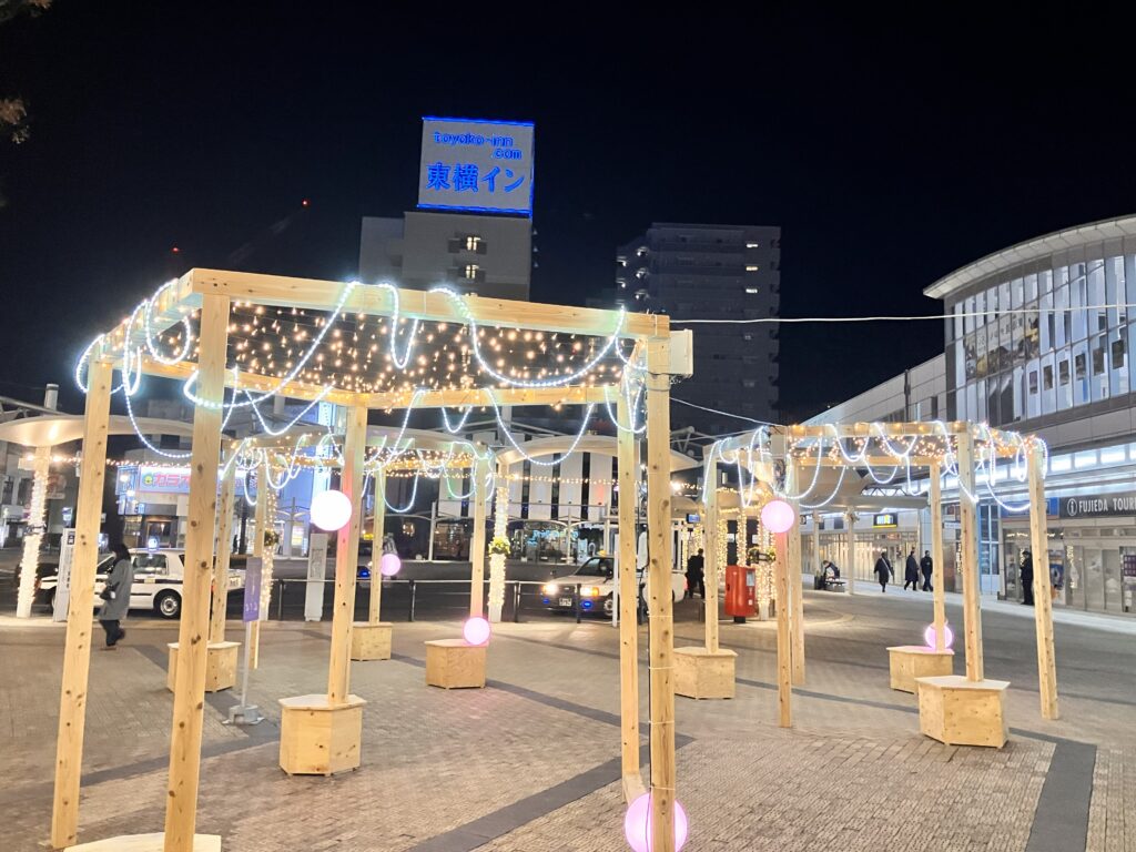 藤枝駅のイルミネーションは、まずそのスケール感に目を奪われます。
